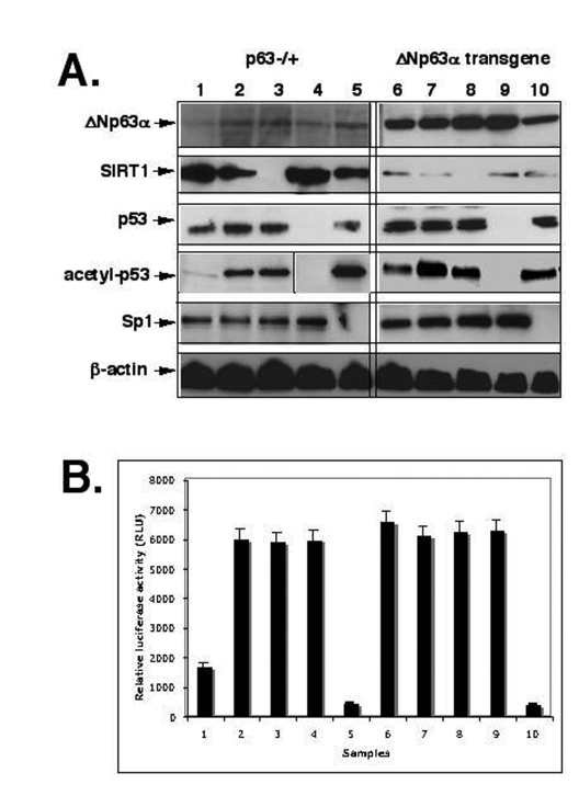 ΔNp63α induces the SIRT1 degradation and the p53/SIRT1 protein interaction