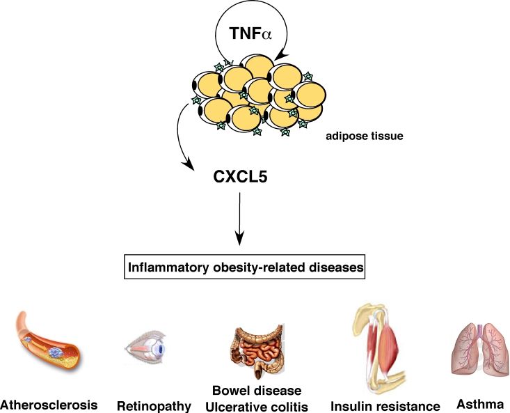 Studies aiming to elucidate the role of WAT-secreted CXCL5 in all these obesity-related pathologies are likely to be forthcoming in the near future. Inhibiting CXCL5 secretion or function in obese individuals not only ameliorate their insulin sensitivity, but could also decrease the risk of developing other major obesity-related pathologies.