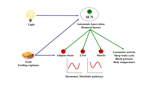 In addition to light, feeding regimens have been reported to affect the clocks in the SCN and/or the periphery.
