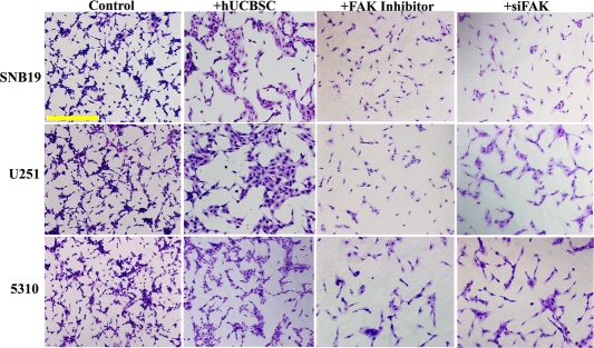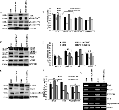 Downregulation of FAK by hUCBSC treatment has an anti-angiogenic effect in U251 and 5310 glioma nude mice models