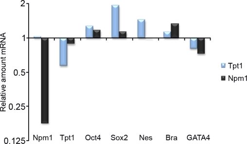 qPCR data from shRNA mediated downregulation of Npm1 and Tpt1 respectively, indicates that both proteins seem to be involved in different differentiation pathways.