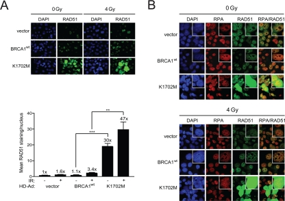 K1702M increases RAD51 nuclear staining that co-localizes with RPA