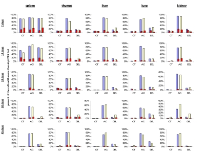 Five mouse organs and four mouse brain regions were examined and compared in very young (7 and 14 days old), adolescent (24 days old), young adult (30 days old) and sexually mature adult (45 days old) male and female mice for the incidence of γ-H2AX focus induction and persistence after exposure to 1 Gy of X rays. The maximum formation of γ-H2AX foci was analyzed 30 minutes post-exposure, while persistent responses were studies 24 hours post-IR [43-44].
