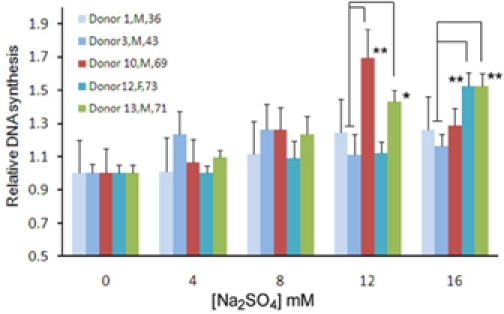 Analysis of the effect of sodium sulfate on the DNA synthesis in bmMSC from adult and aged donors