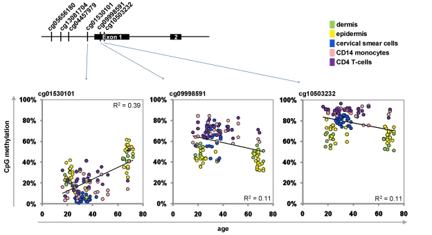 Various CpG sites reveal age-associated hyper-methylation