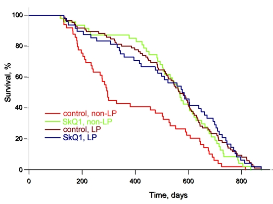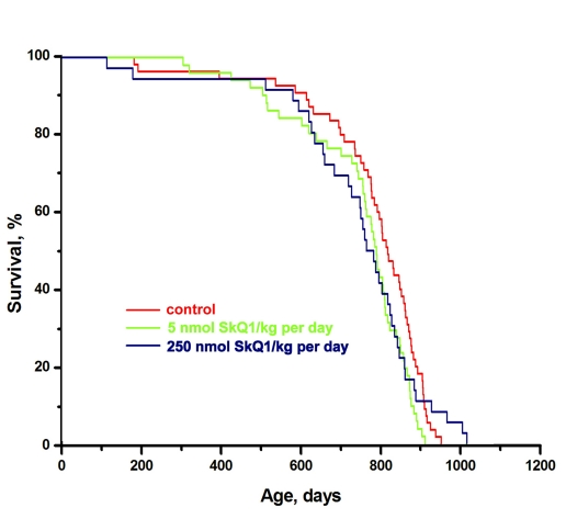 | Mice received 0.05 nmol SkQ1/kg per day during first 595 days of life and 140 nmol SkQ1/kg per day during the next 130 days. | |||||||||||||||||||||||||||||||||||||||||||||||||||||||||||||||||||||||||||||||||||||||||||||||||||