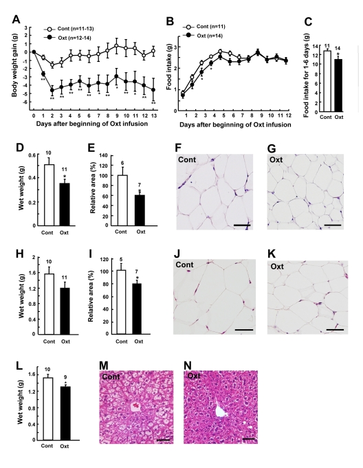 Measurements of food intake, body weight, and fat weight under chronic Oxt infusion