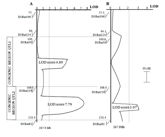 The aim of the subsequent experiments was to assess the effect of these presumptive QTLs on disease manifestation in the congenic rat strains. Congenic rats serve as “proof of concept” that a QTL, when placed in another genetic background, has a meaningful effect in vivo on a particular phenotype [4].