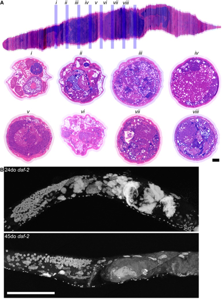 - 30. McGee MD, Weber D, Day N, Vitelli C, Crippen D, Herndon LA, Hall DH, Melov S. Loss of intestinal nuclei and intestinal integrity in aging C. elegans. Aging Cell. 2011; 10: 699 -710. [PubMed] .