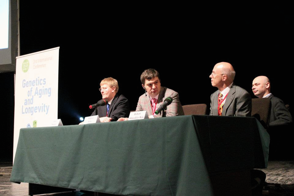 The ongoing revolution in aging research was manifested by the Second International Conference “Genetics of Aging and Longevity” (Moscow, April 22-25, 2012). It was organized by the Science for Life Extension Foundation in collaboration with the Gerontological Society of the Russian Academy of Sciences and the International Association of Gerontology and Geriatrics (European Region). More than 250 gerontologists and and other researchers in the area of aging from 27 countries (Austria, Armenia, Belarus, Brazil, Germany, Greece, Denmark, Israel, India, Iran, Italy, Kazakhstan, Canada, Latvia, Lithuania, Nigeria, Netherlands, Poland, Portugal, Puerto Rico, Russia, United Kingdom, USA, Ukraine, France, South Korea, Japan) gathered to discuss current problems of genetics, life expectancy, and aging mechanisms. Among these scientists were invited speakers Vladimir Anisimov, Vladislav Baranov, Andrzej Bartke, Nir Barzilai, Mikhail Blagosklonny, Holly Brown-Borg, Judith Campisi, Vadim Fraifeld, Claudio Franceschi, David Gems, Vadim Gladyshev, Vera Gorbunova, Andrei Gudkov, Valter Longo, Brian Kennedy, Brian Kraemer, Kyung-Jin Min, Richard Morimoto, Alexey Moskalev, Thomas Perls, Suresh Rattan, Blanka Rogina, Andrei Seluanov, Robert Shmookler Reis, Yousin Suh, Nektarios Tavernarakis, Jan Vijg, Anatoli Yashin, and Piotr Zimniak. The Conference goal was to identify the most promising areas of genetics, life expectancy, and aging, including: the search for longevity genes; the search for pharmacological agents that slow aging; the identification of biological age markers; and the identification of mechanisms by which the environment influences the aging rate.