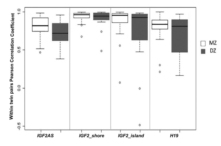MZ and DZ twins were used to estimate the genetic and environmental influences on DNA methylation of the IGF2/H19 locus.