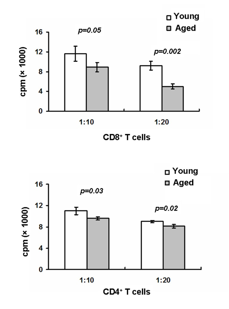 Young (< 6 months) and aged (> 12 months) C57BL/6J mice, as well as OVA-specific MHCI-restricted and MHCII-restricted T cell receptor(TCR)-transgenic C57BL/6J mice (OT-I and OT-II) were purchased from Jackson Laboratory(Bar Harbor, ME), and were bred and housed in a specific pathogen-free barrier unit. Handing of mice and experimental procedures were in accordance with requirements of the Institutional Animal Care and Use Committee.