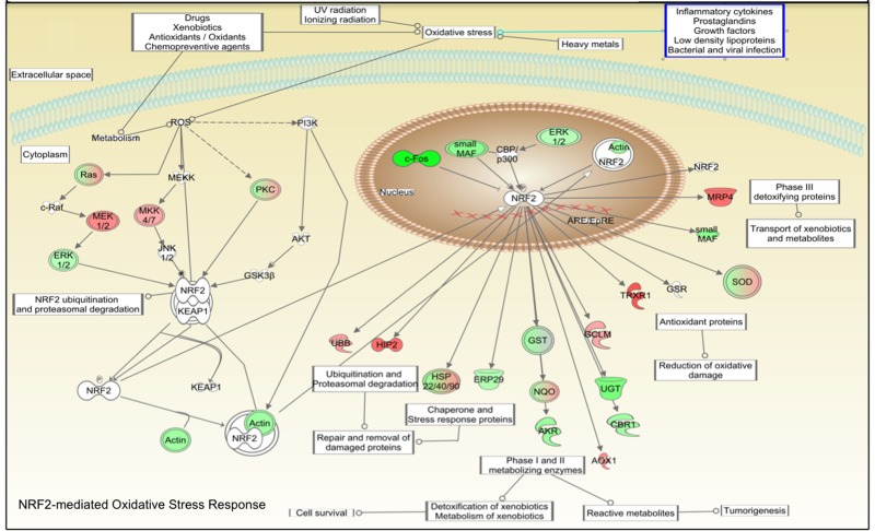 Gene expression analysis shows up-regulation of genes involved in NRF2-mediated oxidative stress response
