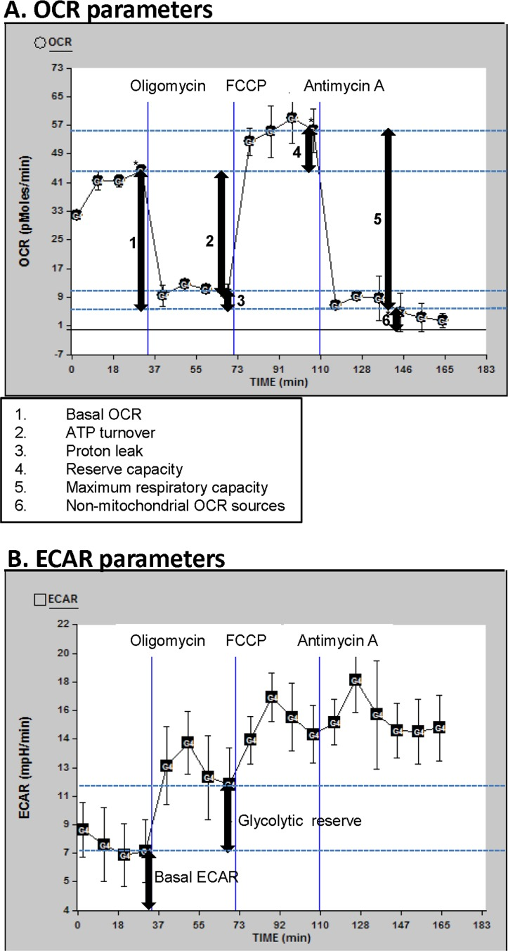 | ECAR parameters are described in Figure 1. As can be seen in Figure 1, the non-mitochondrial OCR has been subtracted out so that all other OCRs represent mitochondrial OCRs. | |||||||||||||||||||||||||||||||||||||||||||||||||||||||||||||||||||||||||||||||||||||||||||||||||||