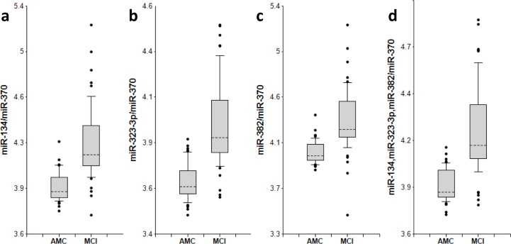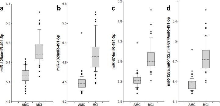 Table 2. Differentiation of MCI from AMC by miRNA biomarker pairs