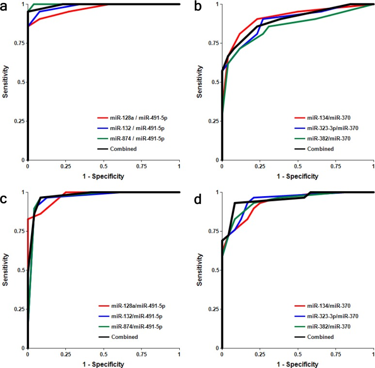 | miRNA pair | 128a/491-5p | 132/491-5p | 874/491-5p | miR-132 Fam. combined | 134/370 | 323-3p/370 | 382/370 | miR-134 Fam. combined |
