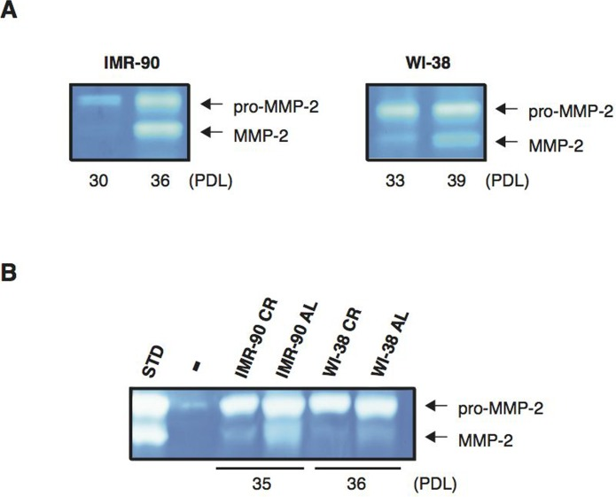 CR serum treatment significantly decreases the senescence-associated activation of MMP-2 in normal human diploid fibroblasts