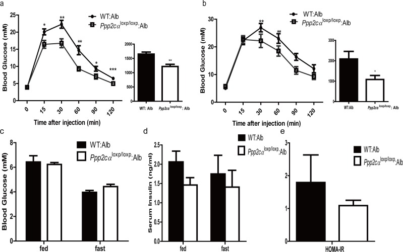 Improved glucose homeostasis in Ppp2cαloxp/loxp: Alb mice