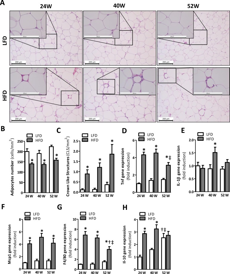 Inflammation in AT is apparent at 24 weeks of HFD feeding