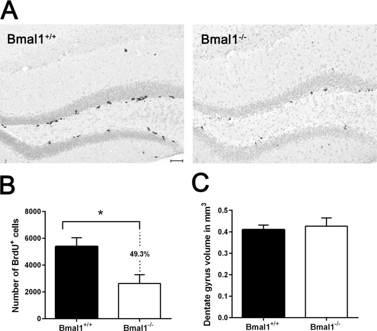 The pool of NPCs in DG was reduced in Bmal1−/− mice