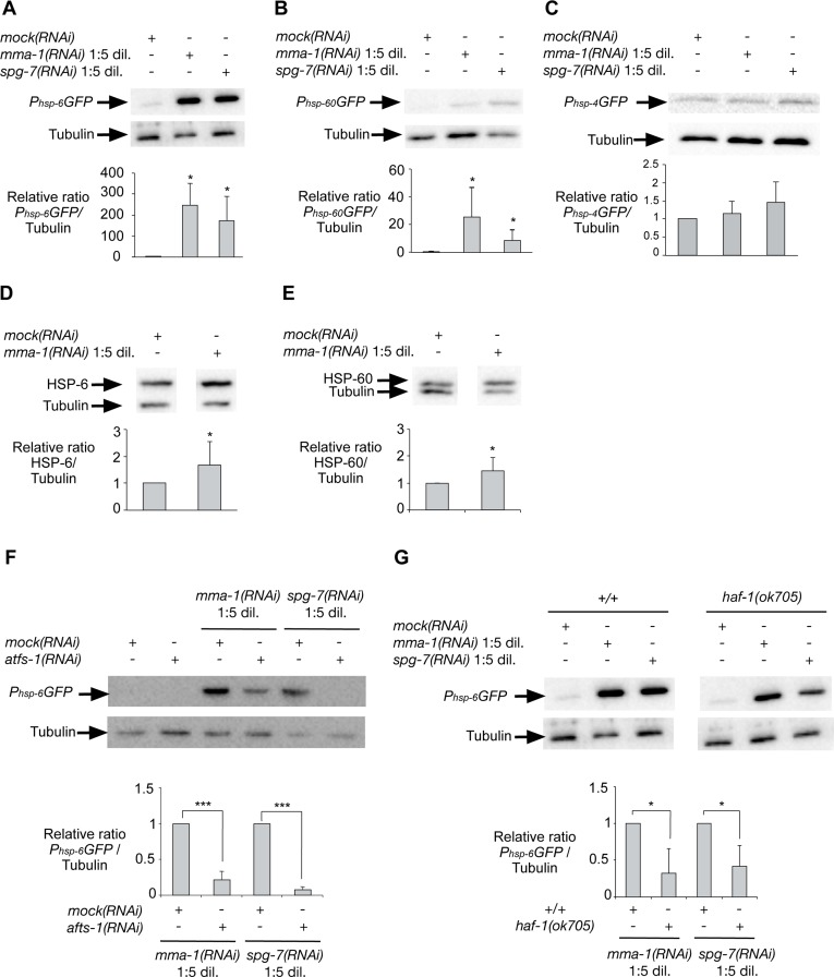mma-1(RNAi)-induced up-regulation of hsp-6 transcription is dependent on ATFS-1 and HAF-1