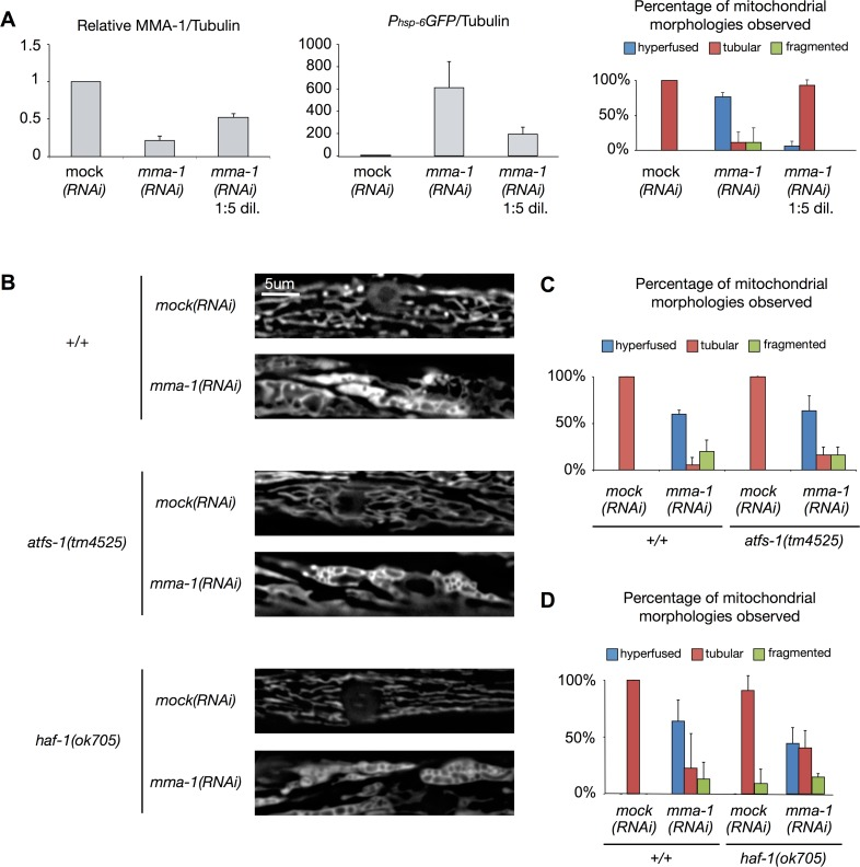 mma-1(RNAi)-induced mitochondrial hyperfusion is independent of HAF-1 and ATFS-1