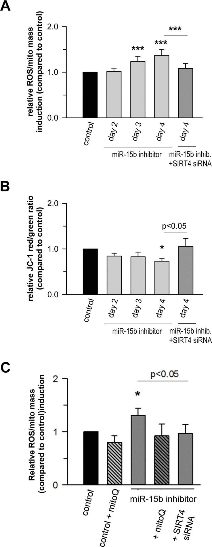 Inhibition of miR-15b promotes mitochondrial ROS generation and reduces mitochondrial membrane potential in a SIRT4-dependent manner
