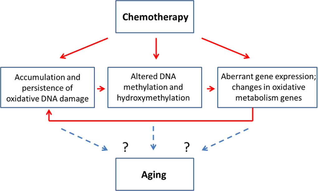 The molecular changes observed in this chemo brain study have also been reported to play key parts in neurodegeneration and aging (Figure 5). Indeed, increased oxidative damage and altered levels of DNA methylation and hydroxymethylation are established signs of aging [33, 38, 44]. Furthermore, a recent clinical research article suggested a link between aging and cancer treatments and called for basic and model-based research to dissect the link between these two key clinical conditions [18]. In light of this need, our study establishes the initial mechanistic links between chemotherapy-induced chemo brain and brain aging, and provides an important roadmap for future analysis.