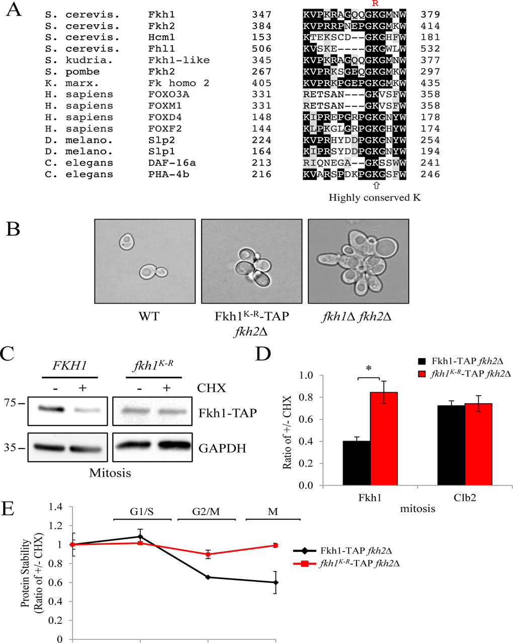 Mutation of a highly conserved lysine residue stabilizes Fkh1