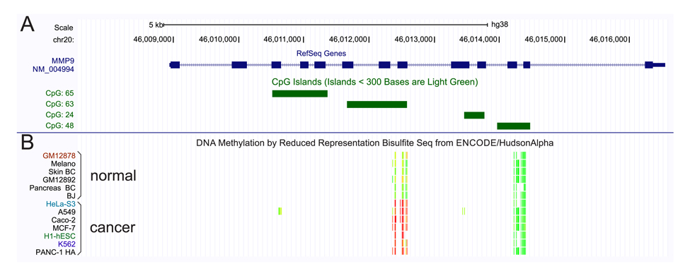 Computational identification of CpG islands and methylation status of MMP9 gene