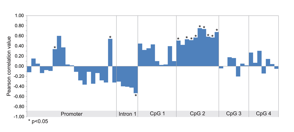 Here, we proposed that the intragenic DNA methylation could affect MMP-9 expression. This hypothesis was supported by Singer et al. [10]. The authors showed that the intragenic methylation was positively correlated to the gene expression and negatively correlated with the majority of histone modifications involved in gene silencing. Mechanically, the intragenic methylation may affect the transcription elongation, intragenic activation (enhancer) and alternative splicing of several genes [10].