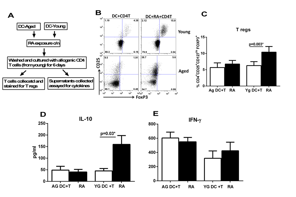 RA treated DCs from aged subjects are impaired in their ability to induce T regulatory cells