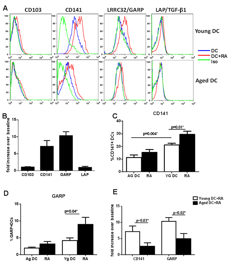 RA exposure upregulated the expression CD141 and LRRC32/GARP on DCs which is defective in DCs from aged subjects