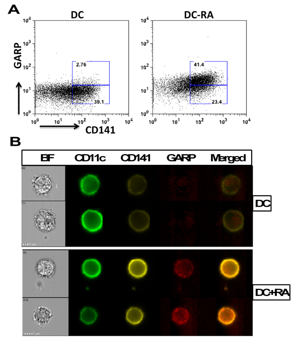 CD141 and GARP Co-localize in RA treated DCs