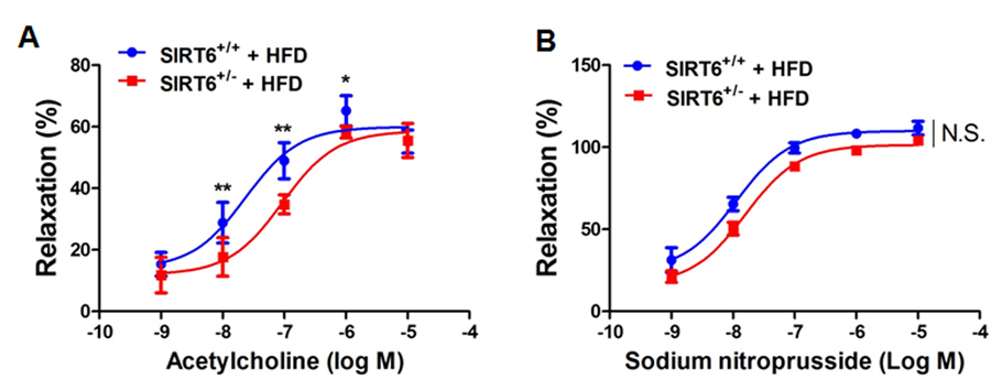 SIRT6 haploinsufficiency impairs endothelium-dependent vasorelaxation in mice fed a high fat diet (HFD)
