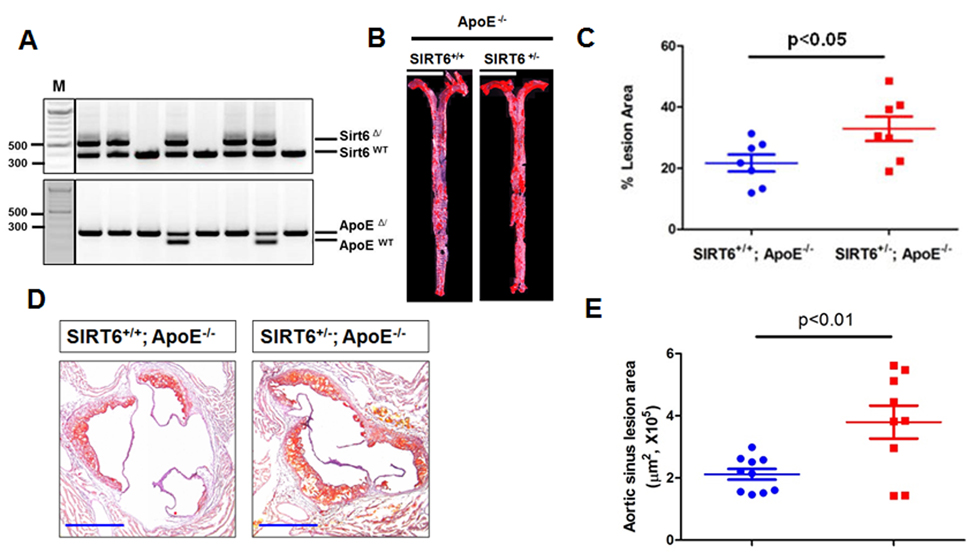 SIRT6 haploinsufficiency exacerbates the development of atherosclerosis in ApoE−/− mice