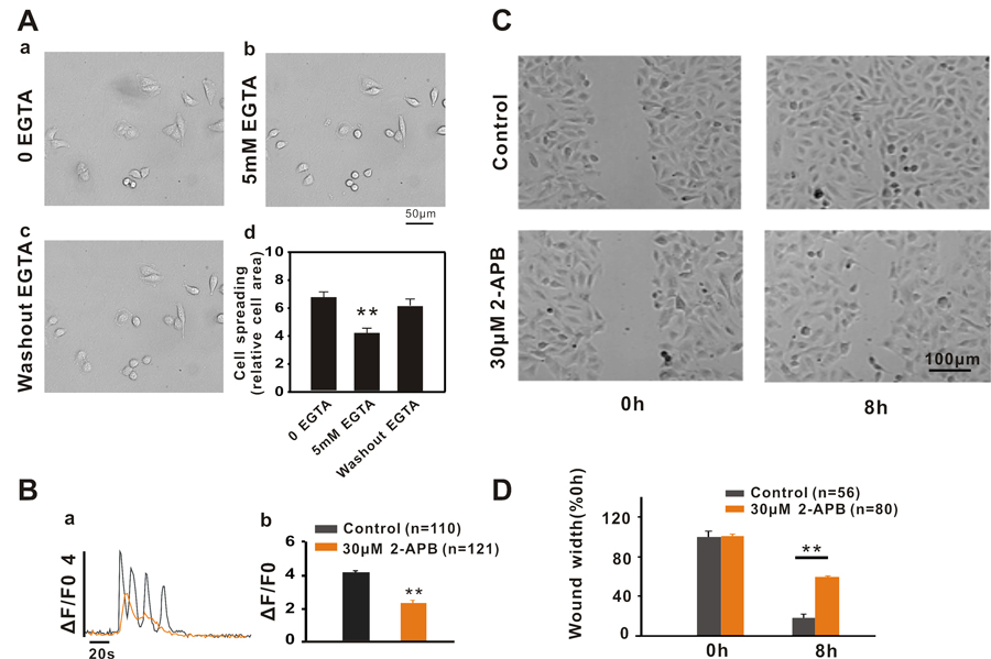 Accumulating evidence indicates that intracellular Ca2+ release and cytosol Ca2+ homeostasis are crucial regulators of cell migration [4, 5]. However, if Ca2+ participates in the migration of A549 cells, how does Ca2+ release regulate A549 cell migration and what is the relationship between Ca2+ release and the migration of A549 cells?