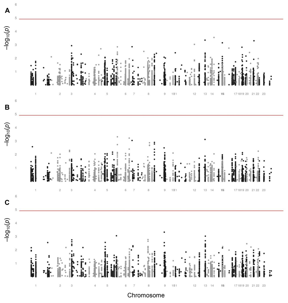 Population stratification was unlikely to explain our results. As a result of the polygynous and patrilocal culture in the research area, men preferentially marry women from outside the region. Previous analyses of this study population have confirmed that the female-mediated gene flow is nearly fully random and prevents population stratification of autosomal genes [31]. To account for possible population stratification in this study, we rigidly excluded individuals that had a different allele at less than 10% of the loci indicated by an IBS1 below 10% and SNPs that were not in Hardy-Weinberg equilibrium. In addition, we adjusted our analyses for tribe, which represents a mainly cultural population stratification, and for the main dimensions of the multidimensional scaling (MDS) analysis, which represents a mainly genetic population stratification. The MDS analysis did not reveal any population stratification. The adjustments did not affect our results.