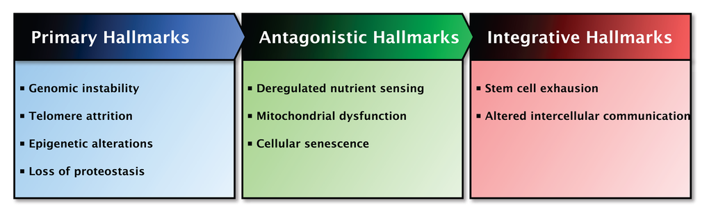 These theories are not mutually exclusive and attempts to unify them into one theory have not yet succeeded. Therefore, the molecular and cellular pathways generally considered to contribute to the process of aging were categorized and proposed as the ‘hallmarks of aging’ [15].