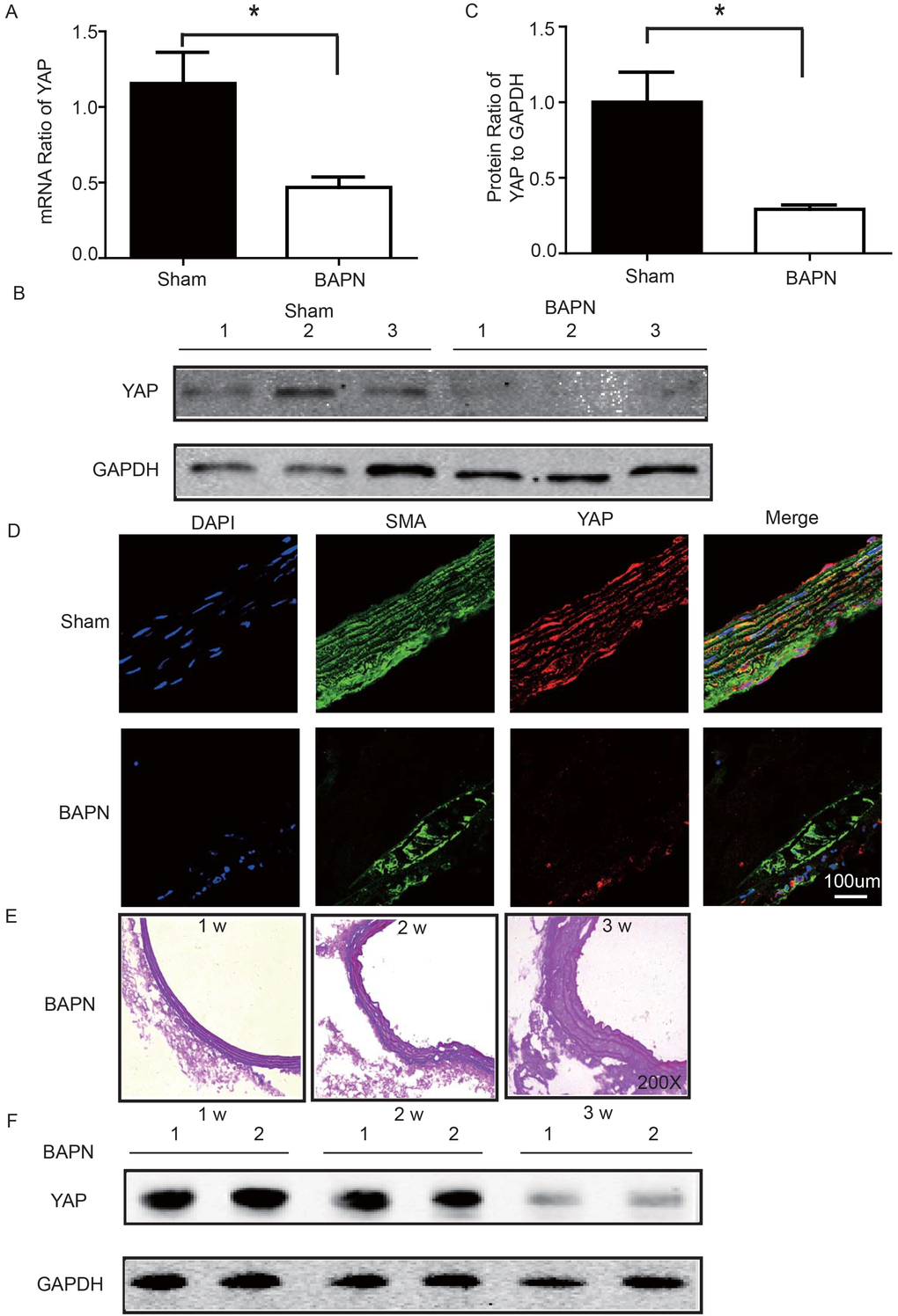 YAP decreased during development of ECM damage in BAPN-induced mouse STAAD model