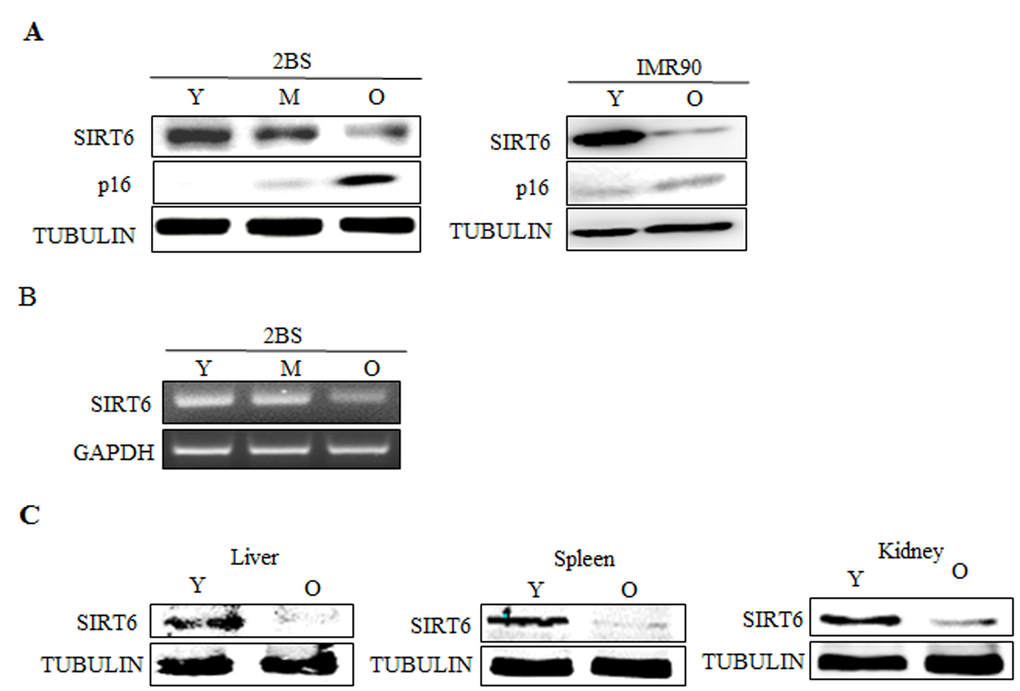 Expression of SIRT6 is decreased during senescence in human fibroblasts