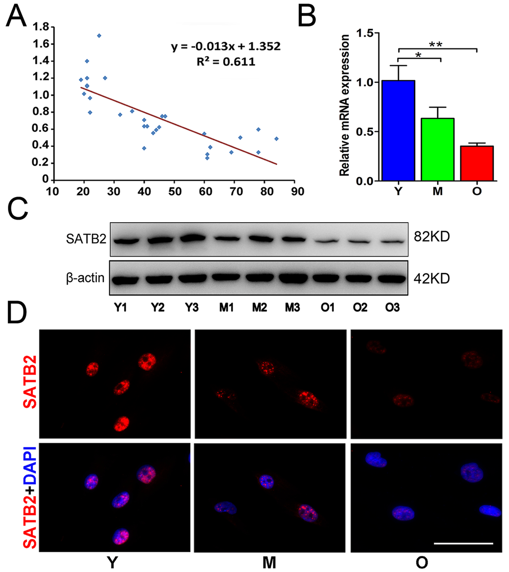 SATB2 expression in AB-BMSCs declines with age