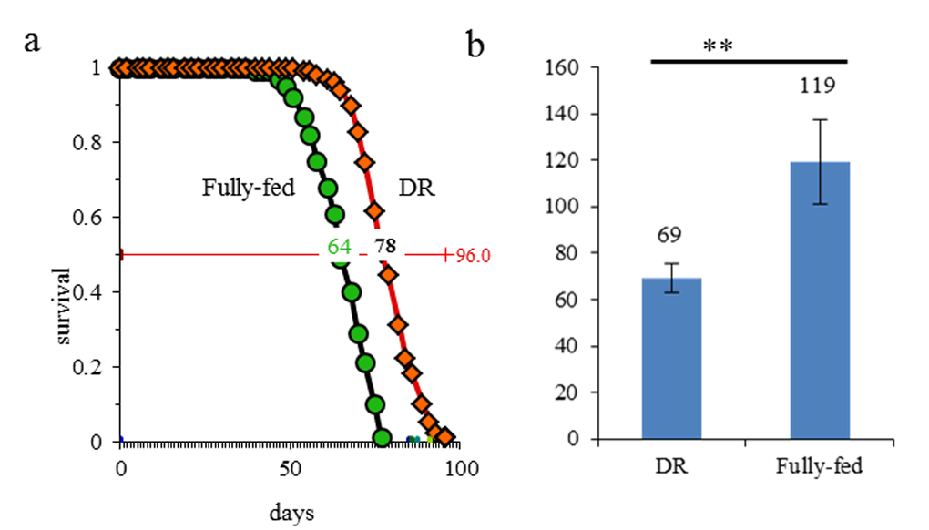 - 1. Metaxakis A, Partridge L. Dietary restriction extends lifespan in wild-derived populations of Drosophila melanogaster.. PLoS One. 2013; 8:e74681. https://doi.org/10.1371/journal.pone.0074681 [PubMed]