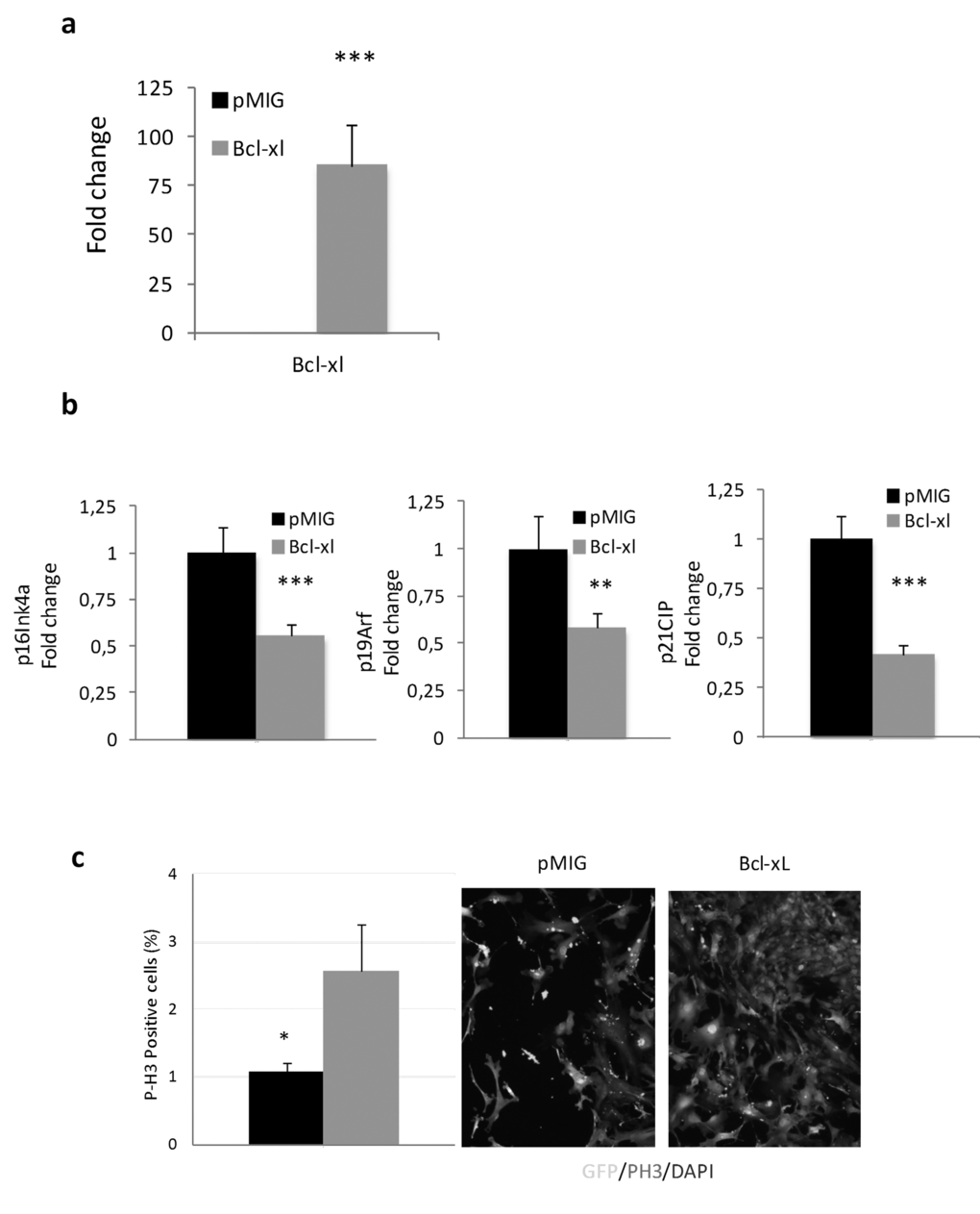 Isolation, culture, and assays with MEFs were performed as described previously [32]. Bcl-xL was ectopically expressed from retroviral vector pMIG (Addgene) as described previously [33].
