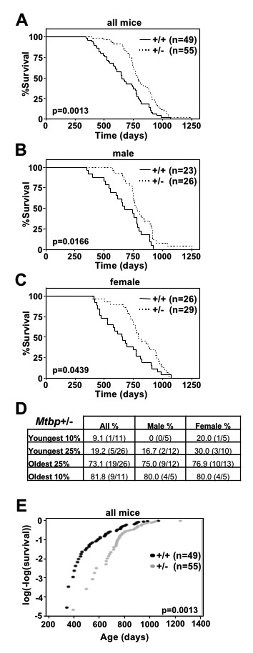 Mtbp+/- mice have increased longevity