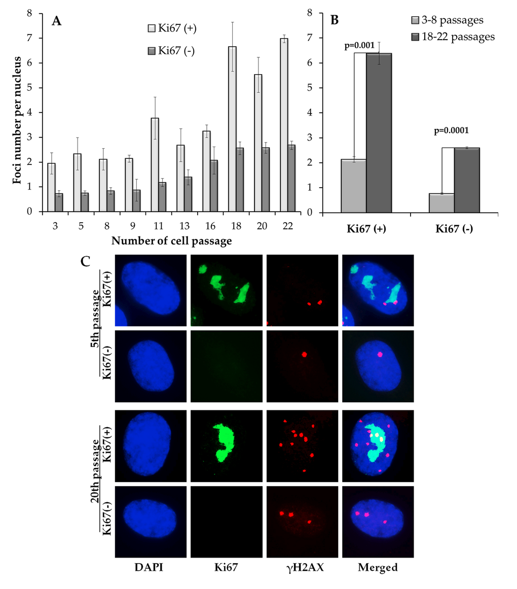 The aim of our study was to investigate the pattern of change in the number of γ-Н2АХ foci during long-term (up to 22 passage) culturing of MSCs.
