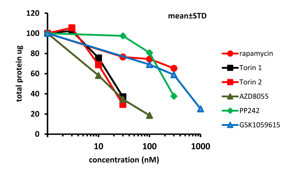 Rapamycin was purchased from LC Laboratories (Woburn, MA). Pan-mTOR inhibitors (torin 1, torin 2, PP242, AZD8085, KU-0063794, GSK1059615) and PD0332991 were from Selleckchem (Houston, TX). Stock solutions were prepared in DMSO.