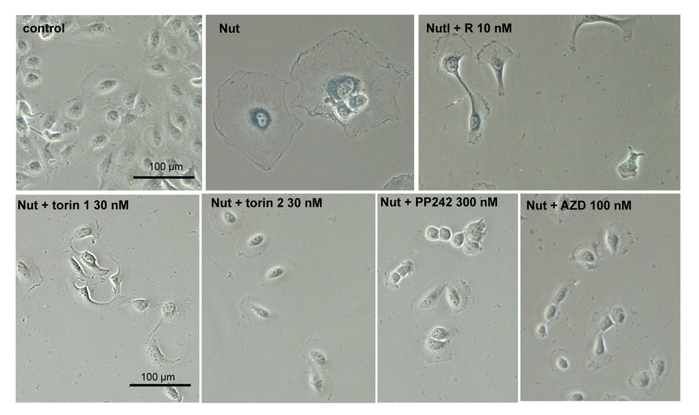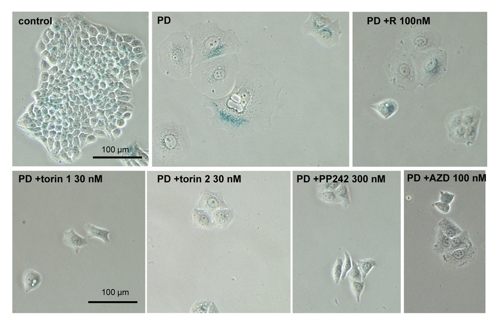 Pan-mTOR inhibitors suppress senescent morphology of SKBR3 and MEL10 cells