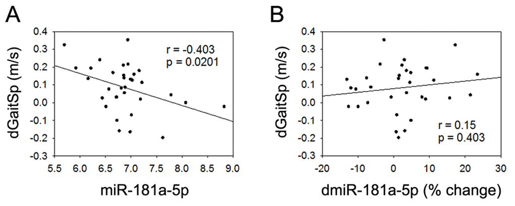 Table 2. Pearson correlation analysis of associations between gait speed changes and plasma miRNAs (n=33).