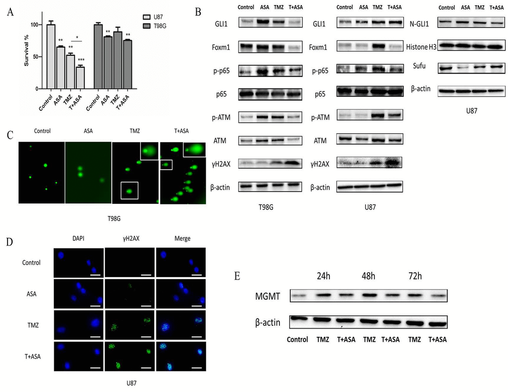 Aspirin (acetylsalicylic acid, ASA) and Temozolomide were obtained from Sigma-Aldrich (St Louise, USA). GANT61 was obtained from Selleck Chemical (Houston, USA). Cell culture medium (Dulbecco’s modified Eagle’s medium) and fetal bovine serum were purchased from Biological Industries (Bioind).